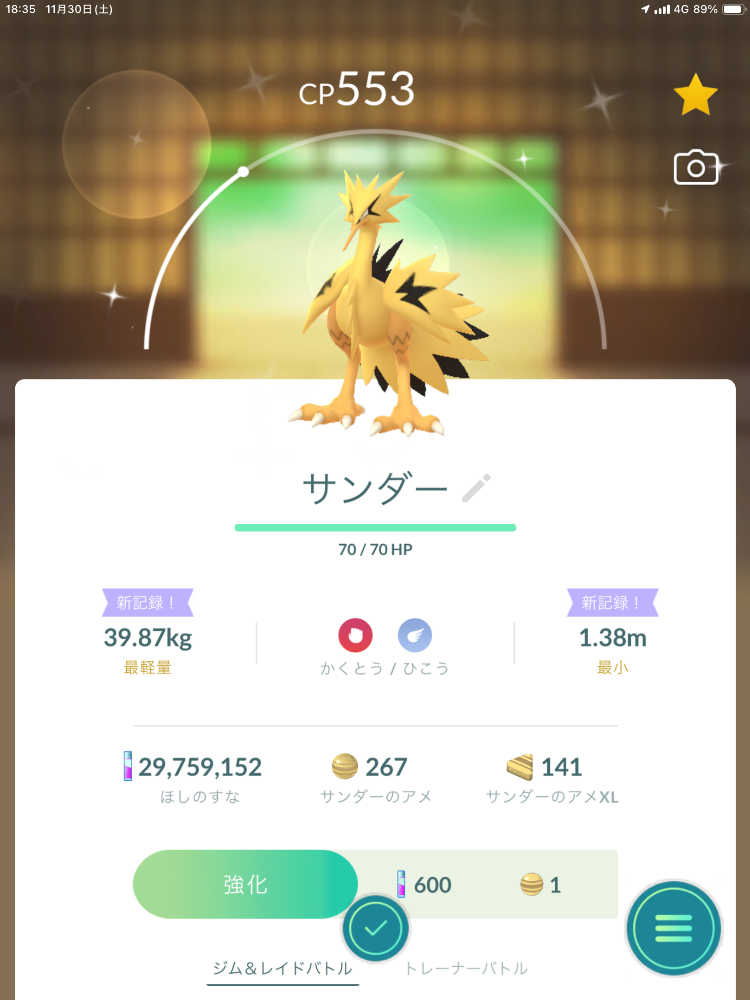 翌日11月30日にはお散歩お香でガラルサンダーの色違いをゲットすることが出来ました。