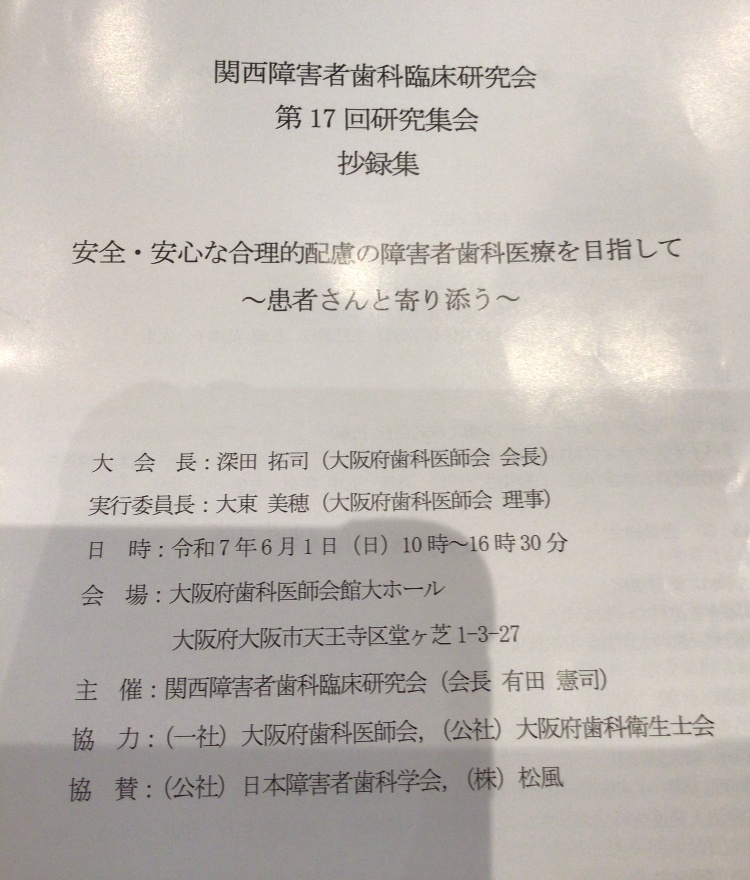 2025年6月1日(日)関西障害者歯科臨床研究会・第17回研究集会に参加してきました。