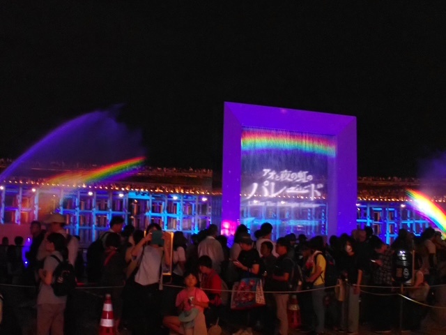今回の目的は夕方の「アオと夜の虹のパレード」「ドローンショー」と決め